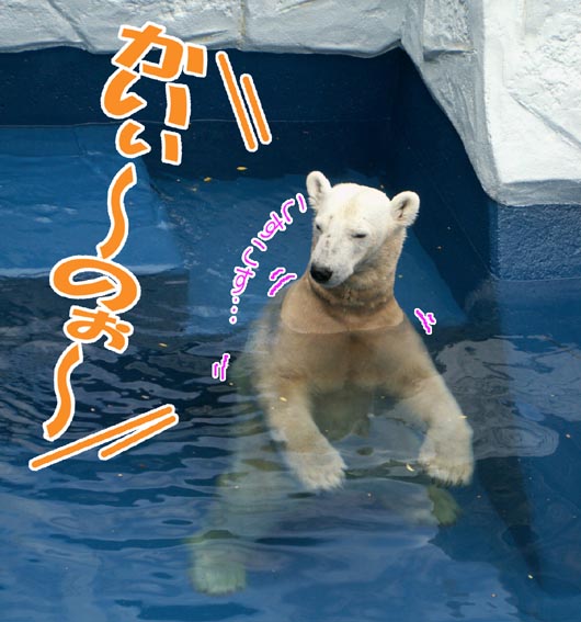 しろくまのピース君が背中を掻いていた